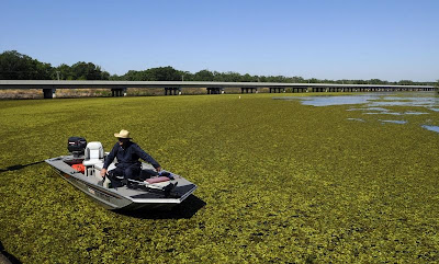 I'm guessing that LDWF is doing some testing because and area known as "Tidus Arm" was surrounded by floating barriers that actually seemed to keep the floating plant at least "contained" in that area.